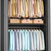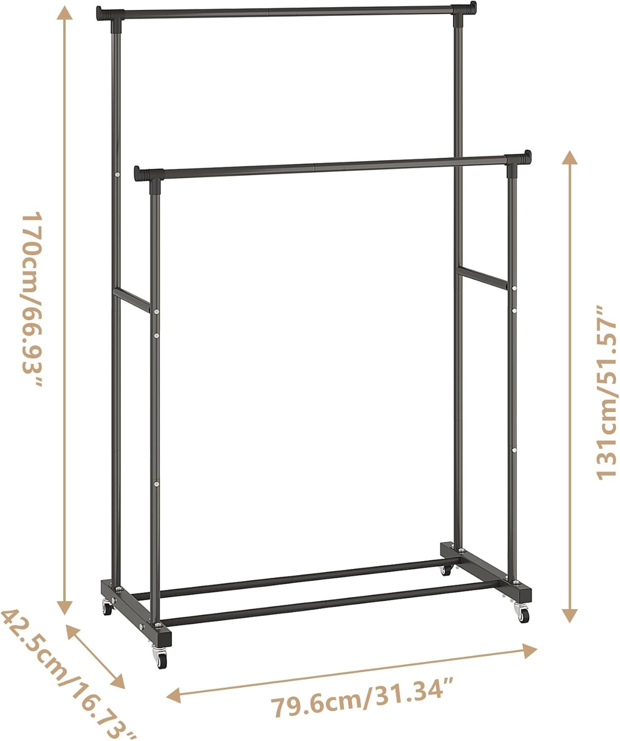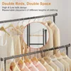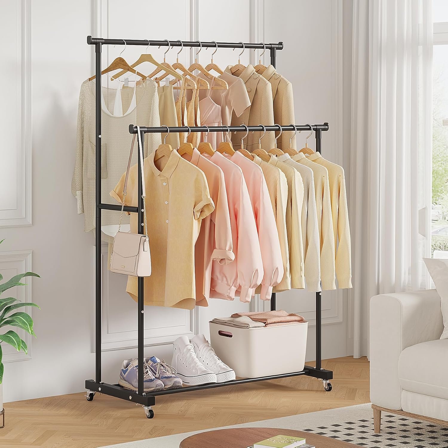 - [Modern Designed]-This clothes rack has double rows of hanging rods. creating a spacious storage space. The high and low rod design can meet different lengths of clothes hanging and avoid clothes becoming wrinkled.