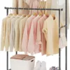 - [Sturdy & Stable]-The garment rack is made of metal with multiple screws to secure the rod joints. Excellent structure makes it more stable and firm. Allows the coat rack to store all kinds of clothes. even heavy coats. However. winter clothes are thicker and heavier. please place them in moderation to prevent them from collapsing.