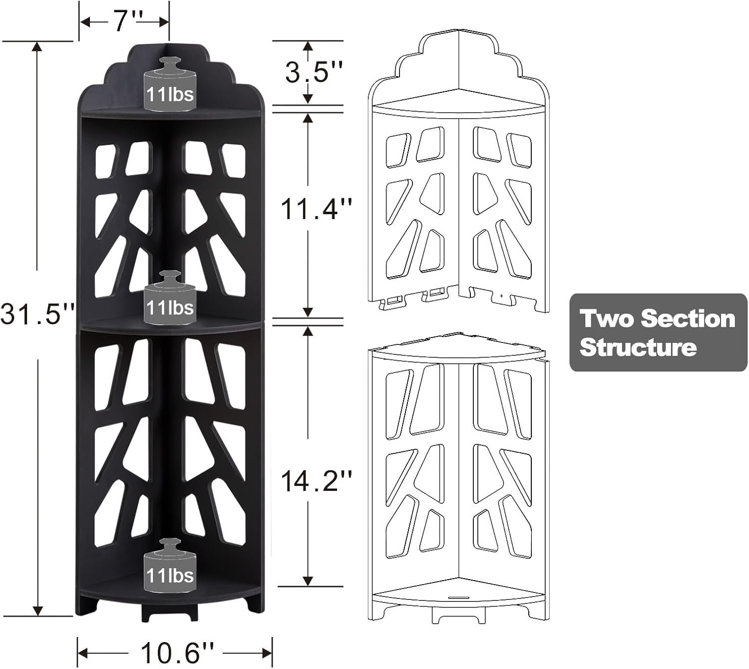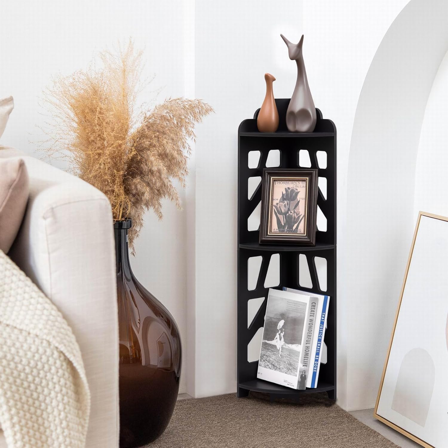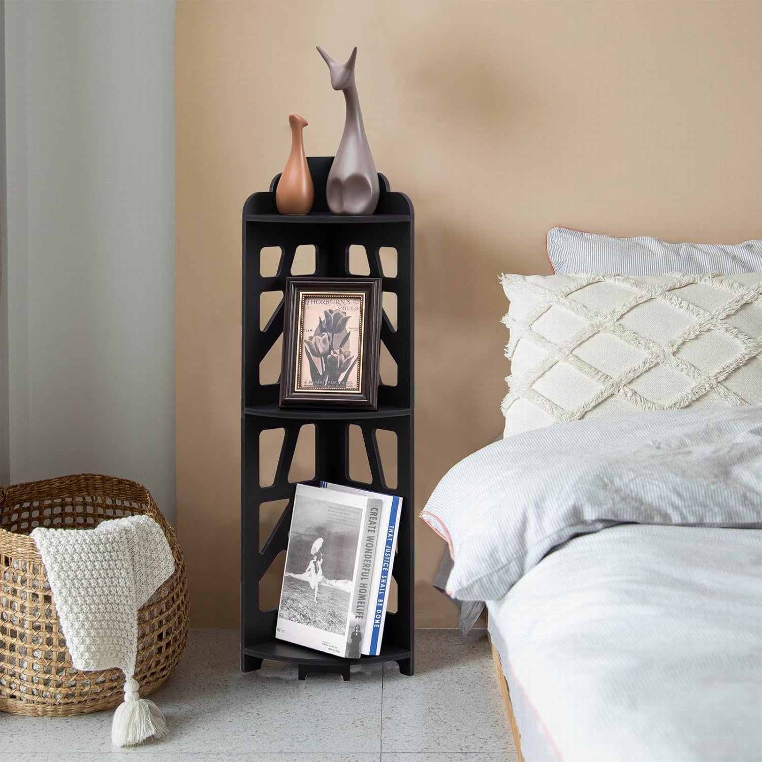 - Storage Function-Small corner shelf fits anywhere of your house.corner bathroom shelf for small spaces.X-Frame cute design with 3 tiered shelf.it provides much storage space.super useful bathroom corner shelf stand in your tiny room.